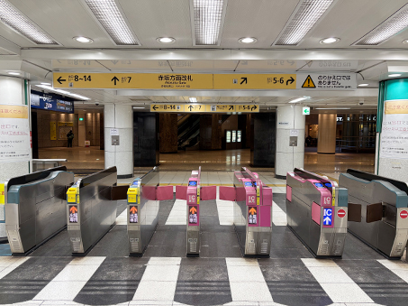 エスカレーターまたは階段を上るとすぐに赤坂方面改札があるので改札を出ます