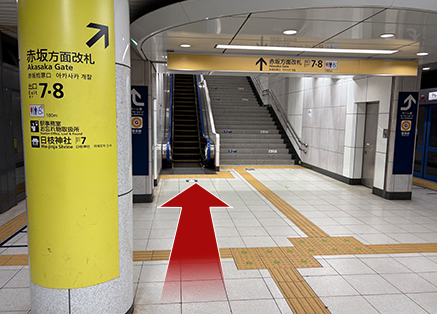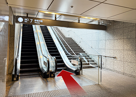 その左隣にある7番出口のエスカレーターが、山王パークタワー直結のエスカレーターです