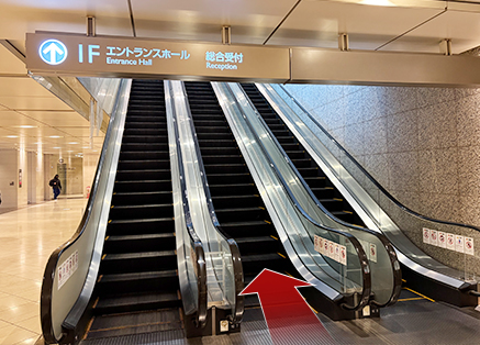 左折するとすぐに山王パークタワー1階エントランス行きのエスカレーターがあるので昇っていきます