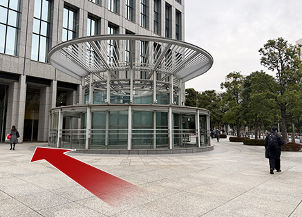 地上に出ましたら、左手に円柱形の建物が見えます。