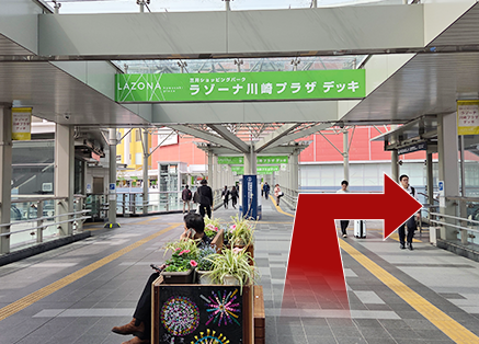 改札を出て左へ進み「ラゾーナ川崎プラザデッキ」に出ます