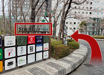 商業施設の看板上に「SOLID SQUARE」の文字を見ながら左へ進みます
