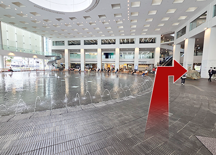 左手の噴水を見ながら、右奥の通路へお進みください