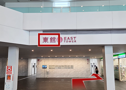 8東館の文字が見えたら右へ進む