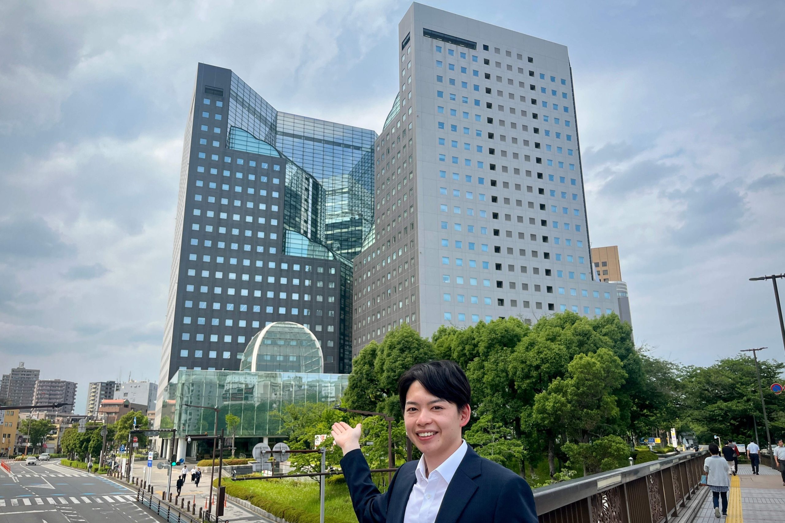 「オフィスは結構広くてきれいです。まだ人数が少ないので自席にいたまま全員と話せます!ビル内は郵便局やコンビニが2店舗あって便利で、飲食店もいろいろあるのでお昼には困りません!」