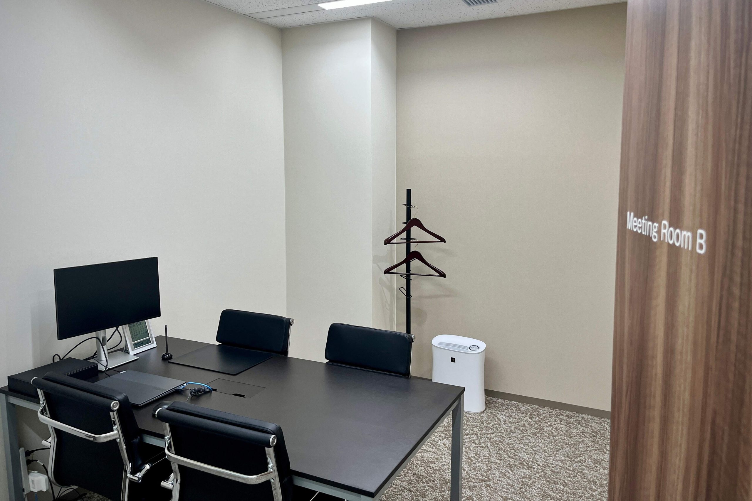 「私も一杯いただきましたが、本当においしいコーヒーでした!川崎事務所に立ち寄った際はみなさん飲んでみてください。 続いては会議室ですね。こちらも落ち着いた雰囲気で、集中して打ち合わせができそうです!」