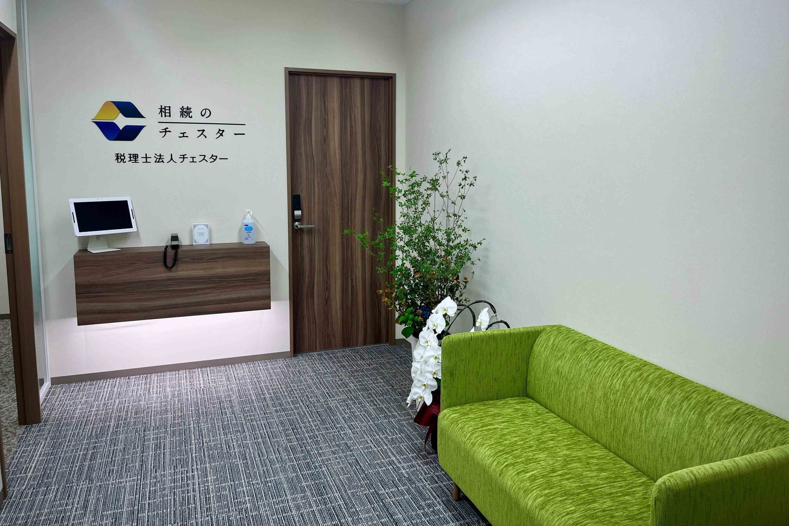「ご来社いただいたお客様に癒しを感じていただきたいという思いで、ワンポイントの差し色として緑のソファをエントランスに置きました!」